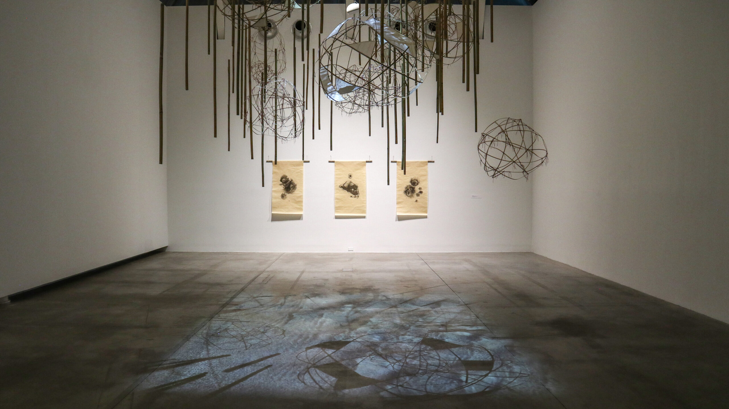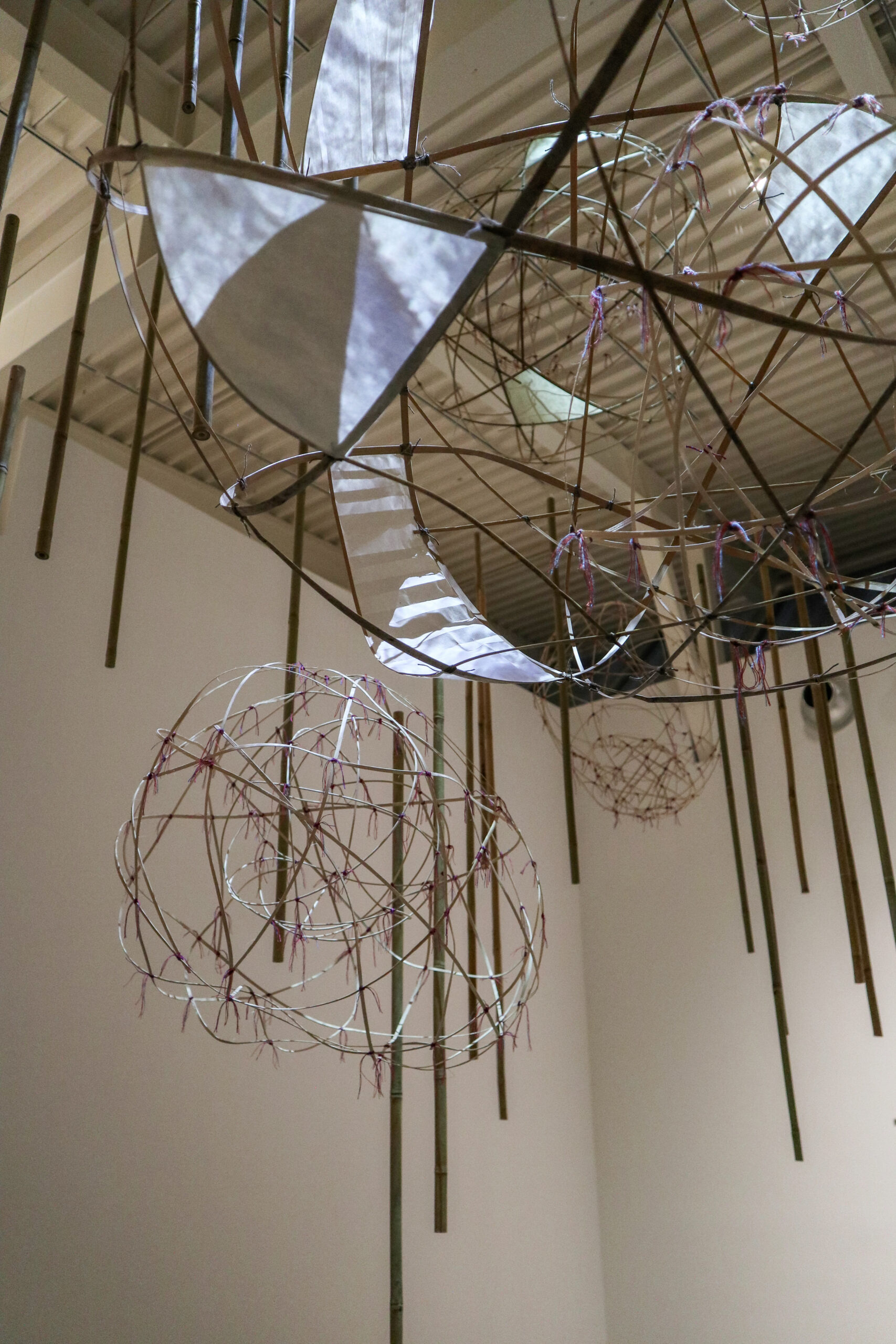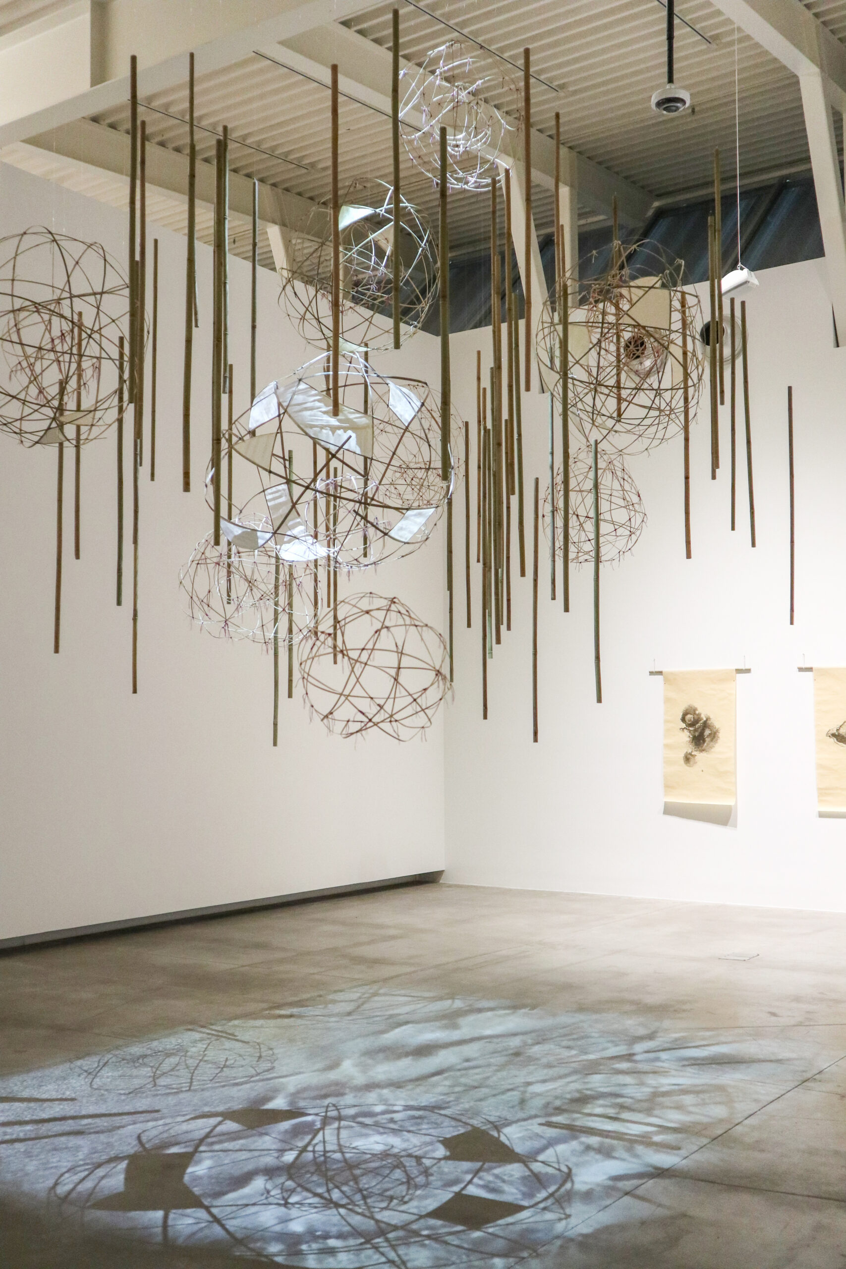 Play in the Field is an installation that combines bamboo objects, lithograph prints, and video and sound recordings. In this work, I revisit the field as both a physical and conceptual space. The installation reconstructs the rhythms of rural life through handmade bamboo spheres and sound-based interactions, inviting viewers into a landscape where play, labour, and memory intertwine. Sound serves as a means of recalling lost or displaced environments, while the responsive materiality of bamboo resists fixed forms.