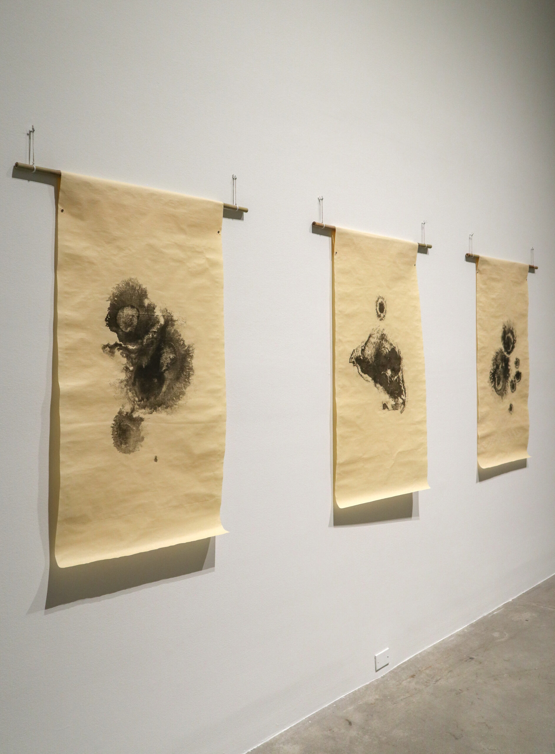 The accompanying print series, Following this Wave, extends this inquiry through lithograph on Xuan paper. The process—water pressed into plates and ink absorbed into Chinese brush painting paper—reflects a slow, accumulative gesture that echoes Michel Serres’ idea of tradition as an ongoing negotiation.