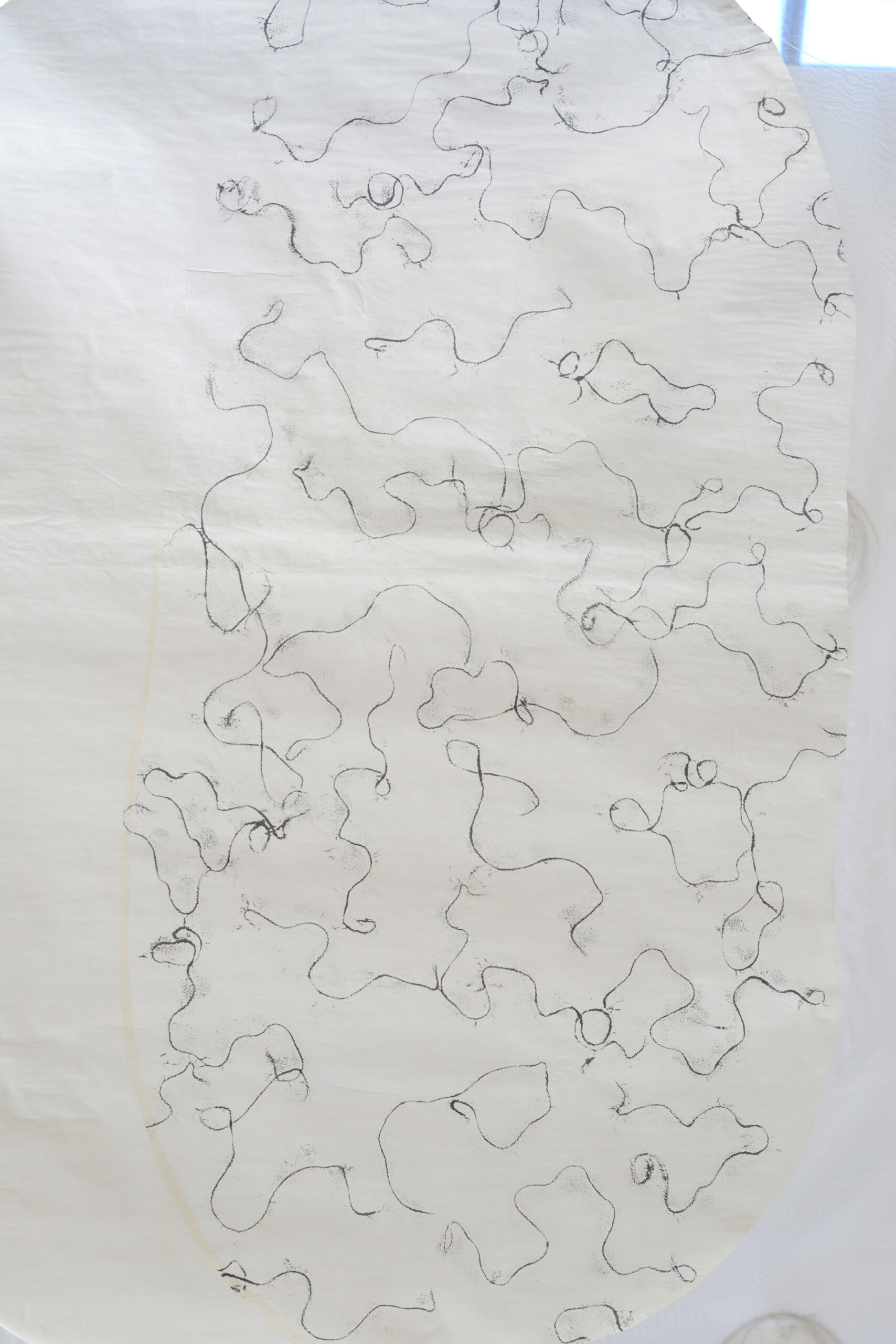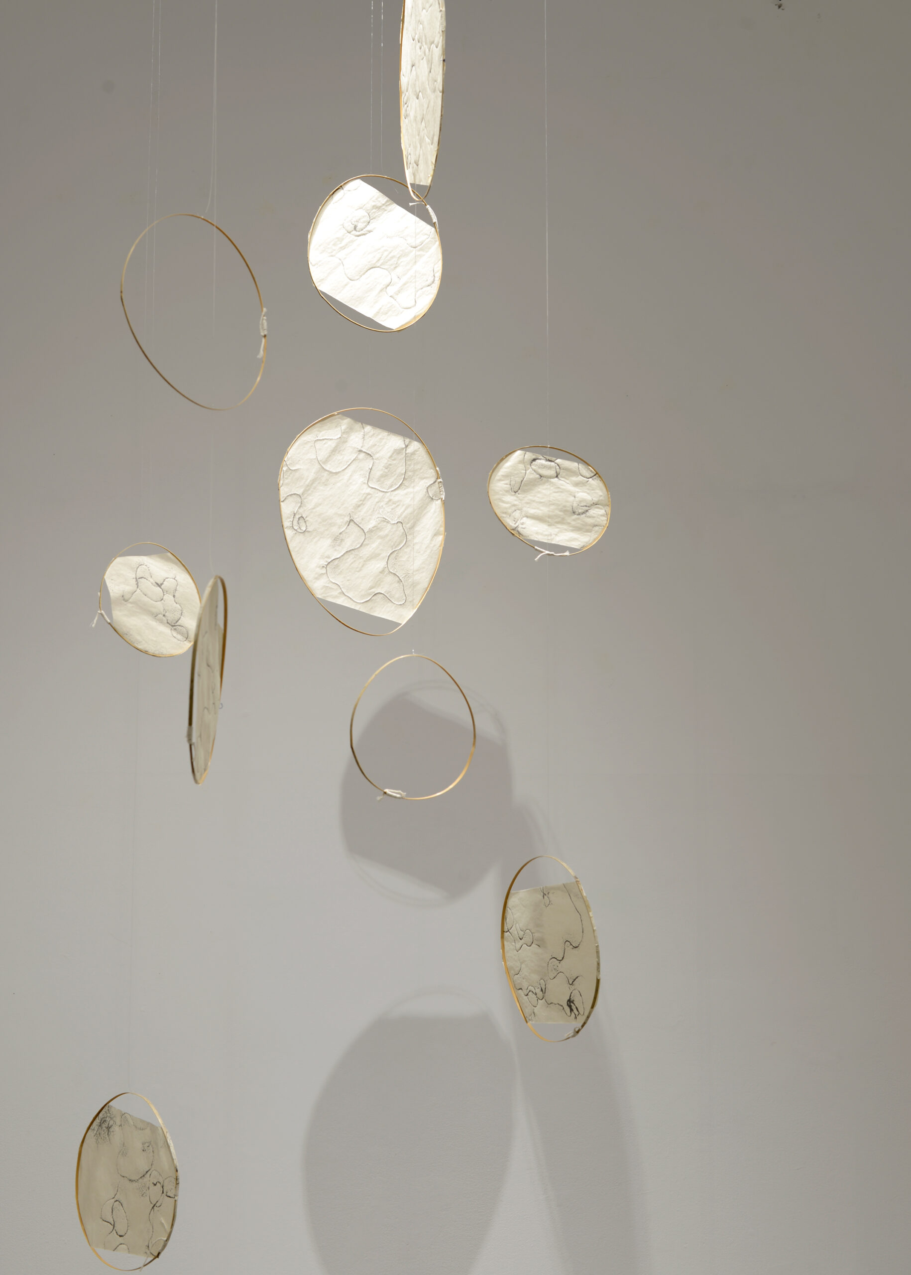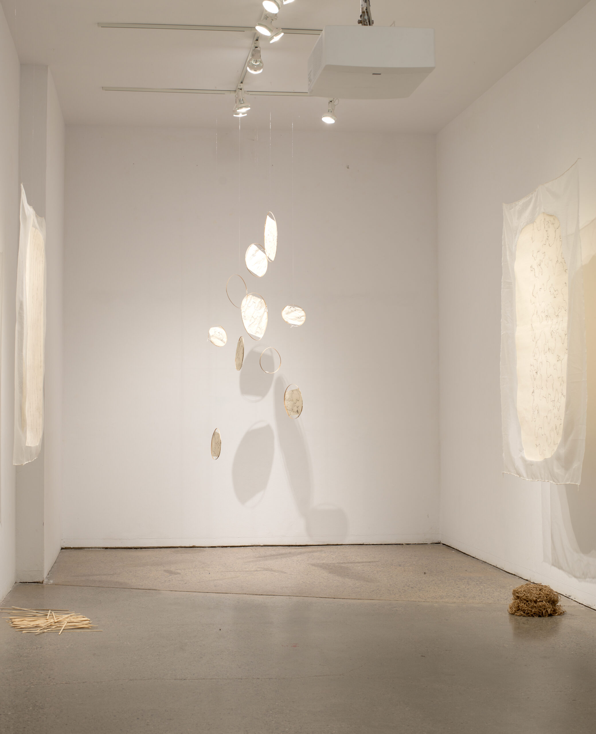 The installation includes Xuan paper with ink rubbings, recycled hemp strips, and bamboo. The hemp strips, once used to tie bamboo structures, retain the memory of labour in their unruly curves. Reconfigured here, they no longer serve a utilitarian purpose but instead embody traces of time, touch, and transformation.